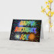This vibrant, multicolored and fun birthday greeting card design features the message "HAPPY BIRTHDAY," and the common first name "JOE" with the letters having a colourful rainbow spectrum like gradient colouring pattern. The background of the front also features a colourful pattern inspired by the look of bursting celebratory fireworks. The inside features a customised greeting message, or could perhaps be cleared and left blank if a message is to be written by hand instead. A greeting card like this might be a fun way to send a personalised birthday message to somebody named Joe. [~Z0000350]