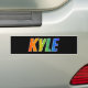This multicolored and fun bumper sticker design features the common first name "KYLE" with the letters having a colourful rainbow spectrum like gradient colouring pattern. The background is coloured black. A bumper sticker like this might be a fun gift to give to somebody named Kyle. [~Z0000343]