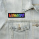 This fun, vibrant, multicolored name tag design features the common first name "LEONARDO", with the letters of the name having a colourful rainbow spectrum like gradient colouring pattern, on a black coloured background. A nametag like this might be worn by a staff member, an employee, or a volunteer whose given name is Leonardo, to help identify the wearer to customers or other people. [~Z0000344]