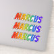 This vibrant, fun, and exciting sticker design features the common first name or given name "MARCUS", with the letters of the name having a colourful rainbow spectrum inspired gradient colouring pattern. It might be a fun gift to give to somebody named Marcus. [~Z0000361]