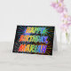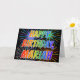This multicolored and fun birthday greeting card design features the message "HAPPY BIRTHDAY," and the common first name "MARIAH" with the letters having a colorful rainbow spectrum like gradient coloring pattern. The background of the front also features a colorful pattern inspired by the look of bursting celebratory fireworks. The inside features a personalized greeting message, or could perhaps be cleared and left blank if a message is to be written by hand instead. This might be a fun way to acknowledge the birthday of somebody named Mariah. [~Z0000350]