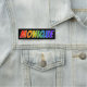 This fun, vibrant, multicolored name tag design features the common first name "MONIQUE", with the letters of the name having a colourful rainbow spectrum like gradient colouring pattern, on a black coloured background. A nametag like this might be worn by a customer service representative, a staff member, or an employee whose given name is Monique, to help identify the wearer to customers or other people. [~Z0000344]