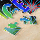 This fun, exciting, birthday-themed jigsaw puzzle design features the message "HAPPY BIRTHDAY, PAIGE" having a colourful rainbow spectrum inspired gradient pattern, and a lively bursting celebratory fireworks inspired background pattern. A colourful puzzle like this might be a fun way to send birthday greetings to somebody named Paige. [~Z0000465]