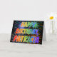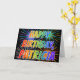 This multicolored and fun birthday greeting card design features the message "HAPPY BIRTHDAY," and the common first name "PATRICIA" with the letters having a colourful rainbow spectrum like gradient colouring pattern. The background of the front also features a colourful bursting fireworks inspired pattern. The inside features a customisable greeting message, or could perhaps be cleared and left blank if a message is to be written by hand instead. This might be a fun way to acknowledge the birthday of somebody named Patricia. [~Z0000350]