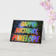 This multicolored and fun birthday greeting card design features the message "HAPPY BIRTHDAY," and the common first name "PENELOPE" with the letters having a colourful rainbow spectrum like gradient colouring pattern. The background of the front also features a colourful pattern inspired by the appearance of bursting fireworks. The inside features a customised greeting message, or could perhaps be cleared and left blank if a message is to be written by hand instead. A birthday greeting card like this might be a fun way to acknowledge the birthday of somebody named Penelope. [~Z0000350]