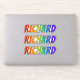 This exciting, vibrant, and multicolored sticker design features the common first name or given name "RICHARD", with the letters of the name having a colourful rainbow spectrum like gradient colouring pattern. It might be a fun present to give to somebody named Richard. [~Z0000361]