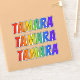 This multicolored, exciting, and vibrant sticker design features the common first name or given name "TAMARA", with the letters of the name having a colourful rainbow spectrum like gradient colouring pattern. It might be a fun gift to give to somebody who is named Tamara. [~Z0000361]