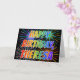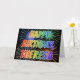 This fun, vibrant, multicolored birthday greeting card design features the message "HAPPY BIRTHDAY," and the common first name "THERESA" with the letters having a colourful rainbow spectrum like gradient colouring pattern. The background of the front also features a colourful pattern inspired by the appearance of bursting fireworks. The inside features a personalised greeting message, or could perhaps be cleared and left blank if a message is to be written by hand instead. A greeting card like this could be a fun way to acknowledge the birthday of somebody named Theresa. [~Z0000350]