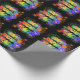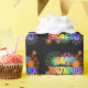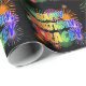 This vibrant and fun birthday-themed wrapping paper design has the message "HAPPY BIRTHDAY, TRACEY" having a colourful rainbow spectrum inspired gradient pattern, and an exciting bursting celebratory fireworks inspired background pattern. Fun wrapping paper like this might be used when wrapping birthday gifts that are being given to somebody named Tracey. [~Z0000456]