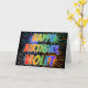 This fun, vibrant, multicolored birthday greeting card design features the message "HAPPY BIRTHDAY," and the common first name "VIOLET" with the letters having a colourful rainbow spectrum like gradient colouring pattern. The background of the front also features a colourful pattern inspired by the appearance of bursting celebratory fireworks. The inside features a customised greeting message, or could perhaps be cleared and left blank if a message is to be written by hand instead. This might be a fun way to acknowledge the birthday of somebody named Violet. [~Z0000350]