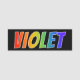 This fun, vibrant, multicolored name tag design features the common first name "VIOLET", with the letters of the name having a colourful rainbow spectrum like gradient colouring pattern, on a black coloured background. A nametag like this might be worn by a staff member, an employee, or a volunteer whose given name is Violet, to help identify the wearer to others. [~Z0000344]