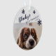Cute First Puppy Christmas Dog Name and Photo Ornament. The background is white and the text is in trendy typography. Personalise the ornament with your dog`s photo, name and year of birth - insert your favourite puppy photo. You can use this custom ornament for any pet. A great holiday keepsake for you or a gift for your family and friends.