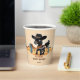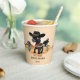 First Rodeo cute cowboy baby horse birthday party tableware personalised party paper cups, adorable black baby horse in a cowboys hat and decorated saddle on Arizona landscape for cowboys western themed birthday party