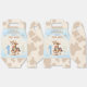 First Rodeo themed 1st Birthday large gable favour box featuring a cute happy cowboy horse in pastel blue and beige and beige cow skin pattern with old paper texture. You can choose from 3 sizes of these gable favour boxes. Easily personalise all the text including the number of the Birthday. - Kate Eden Art