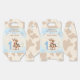 First Rodeo themed 1st Birthday medium gable favour box featuring a cute happy cowboy horse in pastel blue and beige and beige cow skin pattern with old paper texture. You can choose from 3 sizes of these gable favour boxes. Easily personalise all the text including the number of the Birthday. - Kate Eden Art