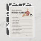 This cute and modern "who knows the 1 year old best?" boy's 1st/first rodeo birthday party game features a horse, cow with cowboy hats, chicken, and a pair of cowboy boots in front of a red barn on a light beige background framed by a white border. The reverse side features a white background with black cow patterns. Personalise for your needs. You can find matching products at my store.