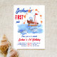 First sale nautical marine 1st birthday party invitation template with whales, little fish, a boat, ocean, red and blue theme.
