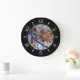 Wall Clock, 25.4 cm Round Black Wooden Frame