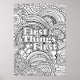 Enjoy colouring this abstract pattern with an inspirational message - first things first. The swirls and abstract lines make a great stress relief project. Colour these Motivational Quotes, Positive Sayings, Mindfulness Activities