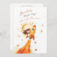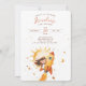 Prepare for liftoff as we celebrate the first orbit with our "Cosmic Adventure First Birthday Invitation." The front illustration captures the essence of exploration with a girl at the helm of a rocket ship, her hair billowing in the solar winds, a backdrop of warm oranges, and starry golds framing her joyous ride around the sun. The back of the invite continues the interstellar theme, the details of the party charting a course in matching fiery tones against a backdrop sprinkled with celestial bodies. This invitation is a fitting announcement for a journey that's only just begun.