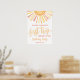 Welcome guests to your little one's First Trip Around The Sun 1st birthday party with this bright and cheerful sun-themed welcome sign! A large sun with vibrant rays in classic sun colours—yellow, orange, and a hint of red—sits at the top, setting the tone for a warm and joyful celebration. The phrase "First Trip Around The Sun" is displayed in a playful mix of modern fonts and bold script typography, adding a charming touch.