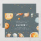 This “First Trip Around the Sun” thank you card features a watercolor sun, planets, and small stars in soft neutral tones. The artwork colors can’t be edited, but all wording can be personalized. The design continues across the card with a scattered planet and star layout that keeps everything cohesive.