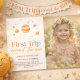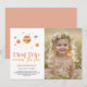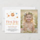 This cute boho "first trip around the sun" 1st/first birthday photo invitation features a white background with the sun in tan/beige color. The reverse side features a rosy brown background. Personalize for your needs. You can find more matching products at my store.