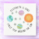 Paper napkins with a pink planet First Trip Around The Sun theme for girl's 1st birthday parties. These coordinate with the other outer space themed decor for celestial galaxy parties, and they have the sun, stars, earth, and some watercolor planets. Search for "first trip" in my shop to find the coordinating items.