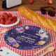 This boys first birthday 'first trip around the sun' design features a rocket, an astronaut, planets, comets, and lots of stars on a dark purple outer space background. You can customise all the text. See the whole matching collection.