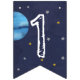 Modern 1st birthday space party bunting banner. Space inspired first trip around the sun with watercolor planets, rockets, and stars.