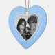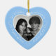 A 1st wedding anniversary is a truly special occasion. Celebrate the first year of marriage with a custom photo ornament in a delightful heart shape frame. Simply upload your own photo of the happy couple and it will appear in the cutout. The pale blue surround features a white script font and decorations. The words are: 1st Wedding Anniversary - A year of love - A year of joy. On the back you can personalise this keepsake with your own message and can also add the year or a full date if you prefer. Note: if you like the 1 year anniversary ornament but have your heart set on a different colour, please contact me.