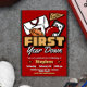 Celebrate your little MVP’s big day with this fun football-themed “First Year Down” invitation! Perfect for your baby boy’s first birthday party, this sporty design features a red and gold color scheme with football gear, a helmet, and a game playboard for that game-day feel.