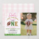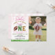 First Year Down Football Girl 1st Birthday Photo Invitation