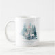 White deer with gold antlers foreground to the watercolor, teal pines forest background. "First Year Grandparents - Name template - Year template" underneath in teal.
