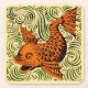 Fish Tile Graphic - This antique orange fish is a graphic art design, based on an 1800s Victorian tile by famous arts & crafts designer William De Morgan. The artwork painting is based on the arts & crafts movement, and harkens back to ancient fish tiles from Greece and Rome.