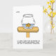 A goldfish in a fishbowl. The water is only a third full. The goldfish looks sad and morose. The tagline reads, "It was time for Stephen to face facts and admit that he had a drinking problem". It is a color, humorous card.