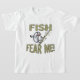 Fish Fear Me T-shirts and Gifts featuring a funny looking fish who is scared of the great fisherman dropping his hook in the water. A great gift for anyone who loves fishing.