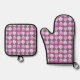 Fish Head Leaves Pastel Fuchsia Magenta White Grey Oven Mitt & Pot Holder Set
