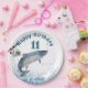 Big fish jumping out of splashing blue water with fishing pole for 11th birthday party.