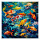 A digital illustration of an oil painting of a lot of fish in the Expressionism style.
