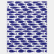 Fish Pattern - Dark Blue on White Fleece Blanket