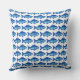 Fish Pattern - Navy Blue and Ice Blue on White Cushion