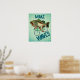 Largemouth bass fish riding a bicycle on a green poster that says "Make Waves"