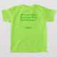 The t-shirt feels and looks great quality, a good thick cotton. It will be a little big for my son, but that means he will be able to wear it and not out grow it too soon. The print was as described on the order when personalised. True size, shape and colour T-shirt- thanks.