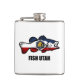 Well made flask, a little better than I had expected. Flask came in clear plastic box which gave it a nice presentation when I took it out of the zazzle packaging. Image is not printed on flask but on sticker. Don't know how this will hold up I haven't used it yet. This would make a Great gift! I plan to purchase more for friends! Cheers. I thought a little brighter than computer. Very crisp, writing wasn't
