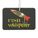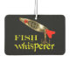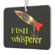 Funny fishing car freshener for all fishermen and fisherwomen. Fish Whisperer in text with a full colour fishing lure near the top. Printed front and back.