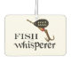 Funny fishing car freshener for all fishermen and fisherwomen. Fish Whisperer in text with a full colour fishing lure near the top. Printed front and back.