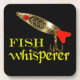 Funny fishing coaster for all fishermen and fisherwomen. Fish Whisperer in text with a full colour fishing lure near the top.