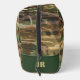 Hunting and fishing toiletry bag featuring a khaki green and brown bullrushes camouflage print pattern. There's a customisable text area on the front, where you can add a name or message. Plus, a monogram area on the right-hand side to add your own initials