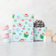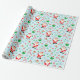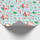 Creative fishing themed Christmas holiday gift wrap featuring Santa fisherman holding a fishing rod surrounded by Christmas treats.